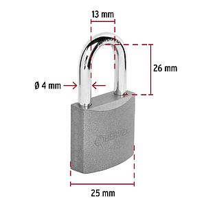 CANDADO HIERRO 25 mm GANCHO CORTO .
