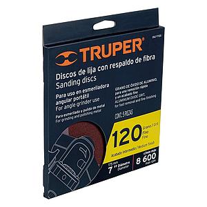 DISCO DE LIJA DE 7' CON RESPALDO DE FIBRA, GRANO 120, TRUPER